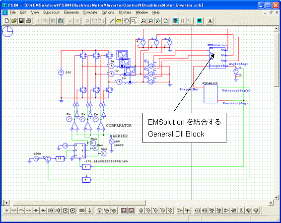 シミュレーションツールPSIM(Powersim Inc.開発、Mywayプラス(株)販売)をEMSolutionと連成させた例は、"“シミュレーションツール PSIMとの連成解析"をご参照ください。