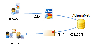 情報の共有化を推進するためには、積極的に情報を発信することが必要不可欠です。AthenaNetは、コンテンツが登録されると自動的に関係者にメールを発信します。これにより、AthenaNetにアクセスすることなしに、情報の更新をタイムリーに知ることができます。
