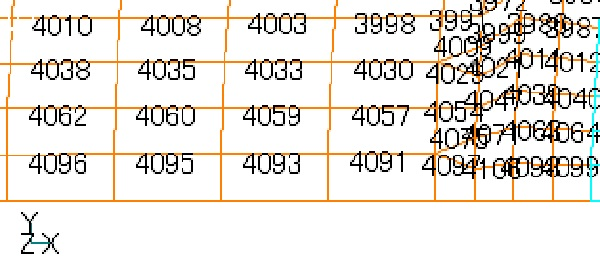本テストはFemap形式のメッシュ入力としていますが,その要素データの順は要素番号の昇順となっています。実際は要素番号というより入力順と考えください。また,上の例は二次元解析ですが,三次元解析でも同じことが言えます。