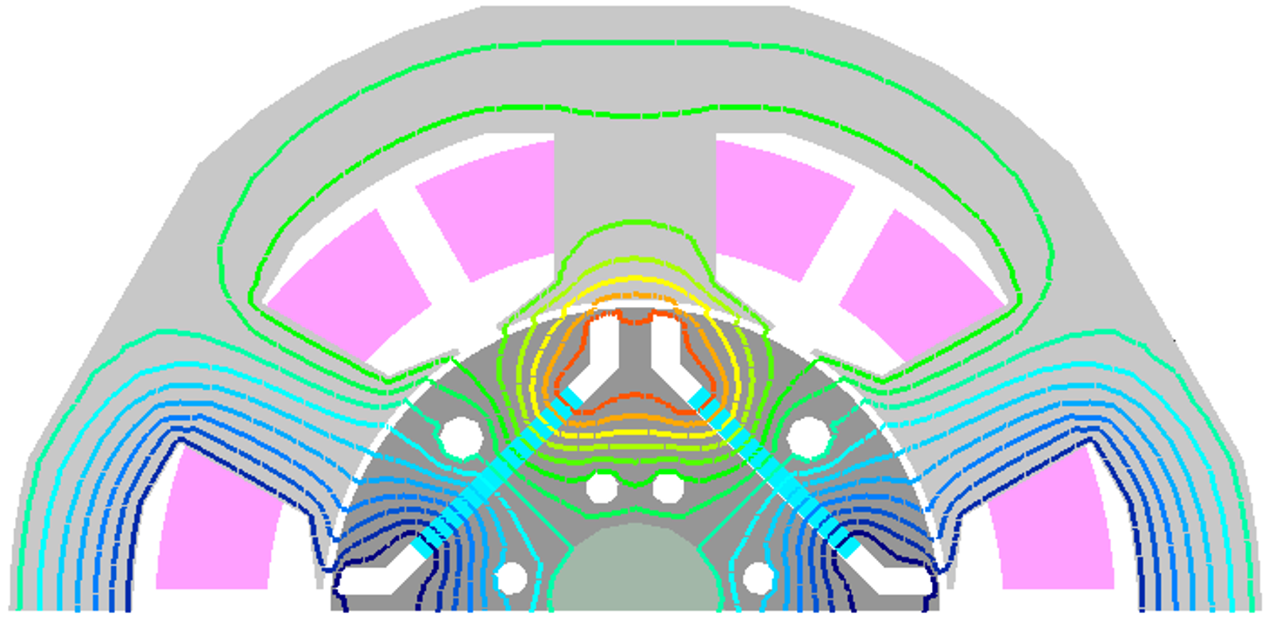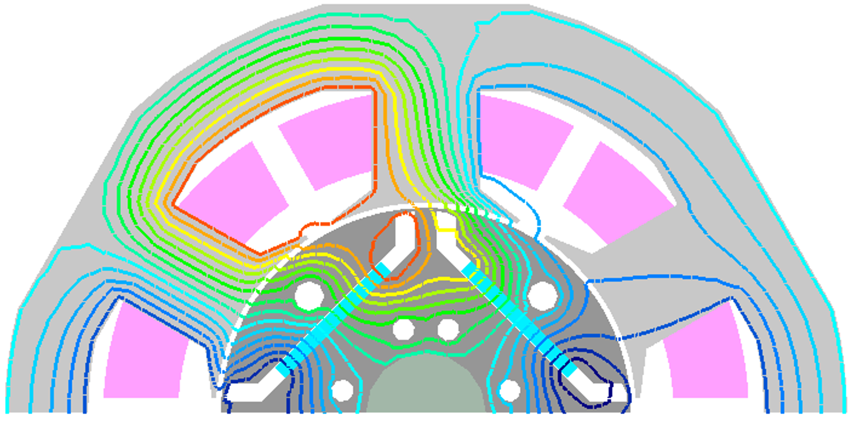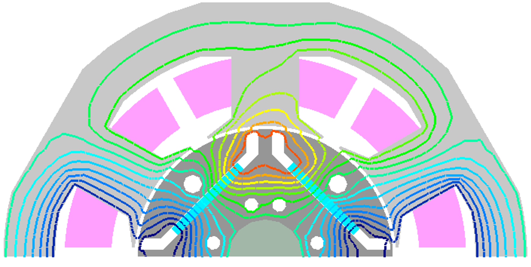Fig.1 D1モデル Frozen permeability法による磁束分布の分解