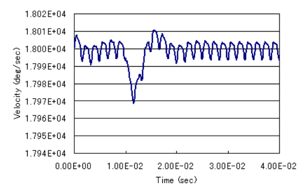 定常運転時のある時刻に、外部トルクに定常トルク以上の負荷がかかった場合のインパクト負荷解析例について述べます。