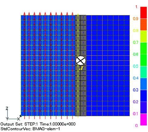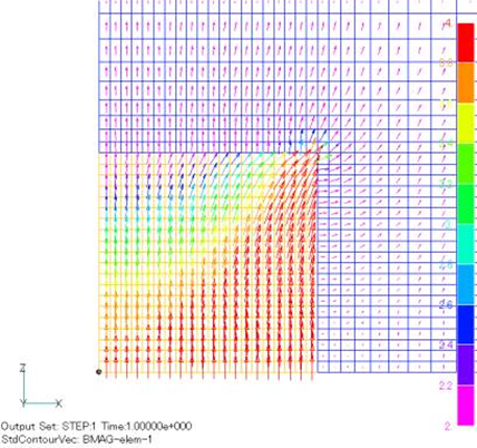 このたび、形状関数の座標系を変換することにより、改良を試みました。磁場強度分布がFig.3のように自然なものとなり、精度が向上したものと思われます。中心軸から離れたところでは、従来の結果とほとんど変わらず、従来のものでも、中心軸付近を気にしなければ正常な分布を示しているものと思われます。