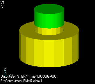 TEAM WorkshopではProblem23として、磁石に働く電磁力を求める問題が出されています。Fig.1にそのモデルを示します。黄緑色の円筒が磁石で下向きに磁化されています。黄色がコイルで、電流が流れることにより、磁石に上向きの力が発生します。 解析は二次元軸対称として行います。コイルは変形ポテンシャル内にLOOPで定義します。