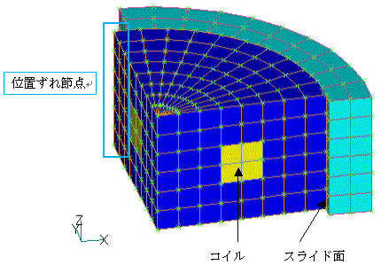 なお,スライド面はスライド辺を運動方向に回転させ,同一面上に節点が乗っている場合にスライド面と判別していますので,今回の回転運動の0.1度のずれの場合では同一面上にあるため,スライド面と認識されています。