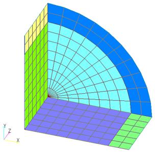 Fig.1に示す,"スライド法における形状データ精度の影響"で使用したモデルを用いて説明します。本モデルはスライド面上の節点を回転軸であるZ軸周りに意図的に0.1度ずらし,DISTANCE_JUDGE=0.0001として回転周期対称条件が適用されないようにしています。これを境界面の面要素出力機能を用いて出力された面要素をFig.2に示します。これより,意図的にずらした節点を含む面は周期境界面ではなく,遠方境界面として認識されてしまっていることが確認できます。