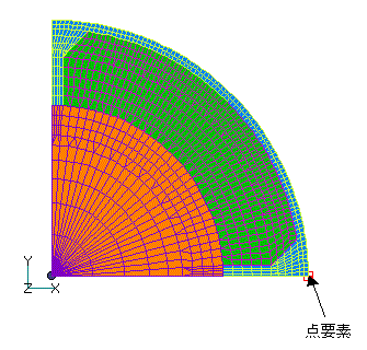 まず、Fig.1およびFig.2のようにロータとステータの二次元メッシュを作製します。三角形と四角形で作製して下さい。今の場合メッシュをCRC/ATLASで作っていて、それぞれをrotor_mesh2D、pre_geom2Dとします。FEMAPで作った場合は、.neuの拡張子を入れてください。ロータの最外面およびステータの最内面は、同じ円上(スライド面上)にあるものとします。 また、それぞれ少なくとも一層の空気層がスライド面に接して必要です。スライド面に接している運動方向のメッシュは必ずしも等間隔である必要はありませんし、ロータとステータのメッシュが同じでなくても構いませんが、できるだけ粗密は少ない方が計算が安定します。スライド面を定義するため、二次元メッシュの場合はロータメッシュでスライド面上にある点を点要素(FEMAPの場合はMass要素)として加えます。