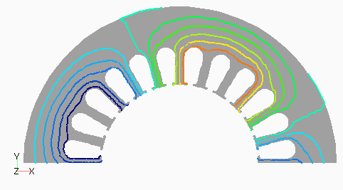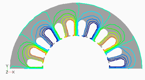 なお,磁束分布はステータは静止座標系,ロータはロータに固定した座標系である回転座標系で出力したものです。