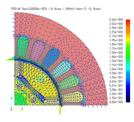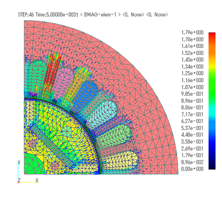 なお,磁束密度と電磁力だけでなく,渦電流密度やローレンツ力も円筒座標系で出力することができます。outputファイル中の電磁力とローレンツ力も指定した座標系で出力されます。