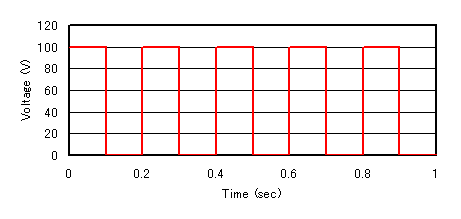 ステップ変化のときは、その同時刻に対して、ステップ以前と以後の値を入力ください。ステップ前後は線形補間されます。上の例で(0.1 0.0)を例えば、(0.1001 0.0)にすることが考えられますが、この場合ステップと判断されず、0.1秒の値は100Vと判断されてしまい、Fig.2での青破線と同じ結果になってしまいますのでご注意ください。