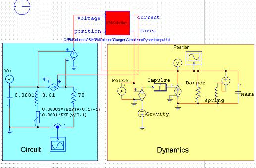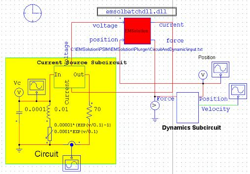 EMSolutionには運動方程式を解く機能がありますが、位置や速度に対して複雑な演算を伴う力が加わるような場合は、PSIMの機能を使用したほうが良いと考えられます。PSIMでは運動方程式を回路方程式に焼きなおし、回路として解析を行います。