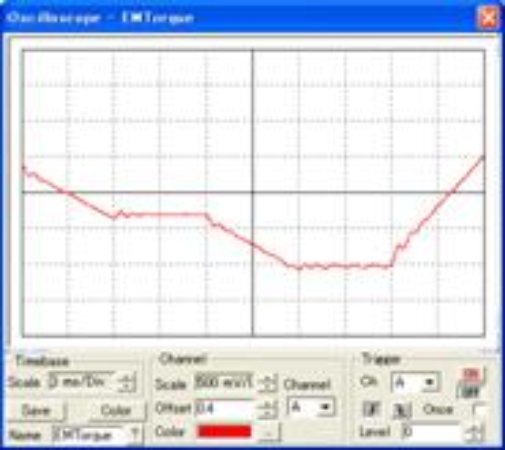 Fig.17では3個のオシロスコープを定義し、解析中に回転位置、速度、トルクをモニタできるようにしています。Fig.19にモニタされたオシロスコープ出力を示します。計算中に経過を見ることが出来、PSIMの便利な機能といえます。EMSolutionのモニタとして活用できるかと思います。経過に異常があった場合、計算を途中で停止したり中止したりすることも出来ます。