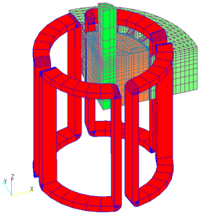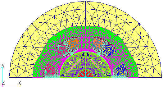 外部磁場ソースであるCOILでは,モデルの対称性を使用して設定することができないため,モデル化は全体モデルとして作成しますが,回路との関係は有限要素メッシュ領域で考えます。