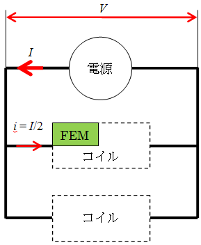 このように,有限要素メッシュにFEMコイルを設定する場合,部分モデルが全体モデルの何分の1かであるかと,並列接続数が幾つであるかを設定することで,コイルの直列,並列接続を表現できます。