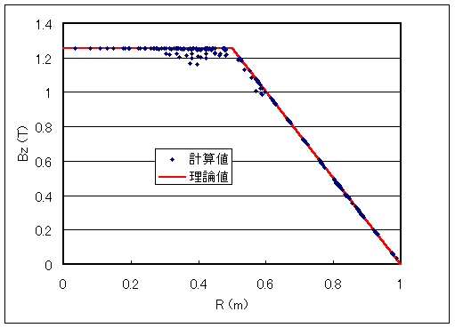 Fig.2に本解析での境界条件を示します。上下面(z=0,z=0.01)はHt=0の条件を課します。対称面(x=0,y=0)はBn=0とし、コイル外面(r=1.0)にはHt=0の境界条件を課します。コイル外面では磁場がゼロですが、Bn=0の条件を課しますと、その面内での磁気ベクトルポテンシャルがゼロとなり、外周の積分もゼロとなるため、内部の磁束量がゼロという条件が課されてしまいます。