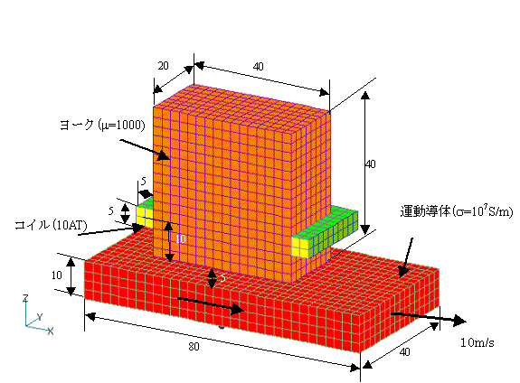 本モデルは、千葉工業大学山崎氏が提案された運動導体渦電流テスト問題です。