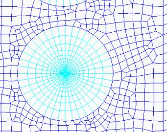 A two-dimensional analysis of the cross section is performed with the overhead line as a straight line. Assume that the three-phase conductors (U, V, W) and the ground potential conductor (G) are arranged as shown in Fig. 1. The three-phase conductors are subjected to an effective AC voltage of 50 kV. y=0 is the ground surface and is assumed to have zero potential. The other outer boundaries are also assumed to have zero potential. The mesh around the conductor is as shown in Fig. 2. We define a surface element (or a line element in the two-dimensional case) for the conductor surface and give it a potential.