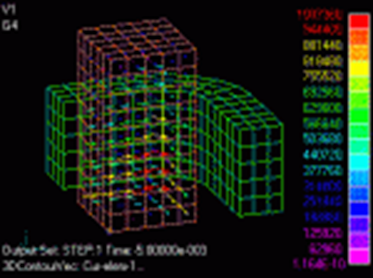 The mesh files pre_geom2D.neu and 2D_to_3D can be the same as the previous one (ELMCUR model). Prepare the file input, place it in the same directory, and run the program. List.1 shows a part of the output file output. It shows the coil current, voltage, interlinkage flux, and the current and voltage seen from the power supply. The number of coil turns is 3,000. The coil impedance, including eddy currents, is obtained from the output voltage and is calculated as follows: