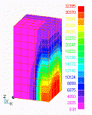 The heat generation of each phase and one-cycle average for material property is output. Fig. 1 and Fig. 2 show the coil current and eddy current distributions at phase 0 and -90 degrees (current file). Fig. 3 shows the time-averaged heating density (heat file).
