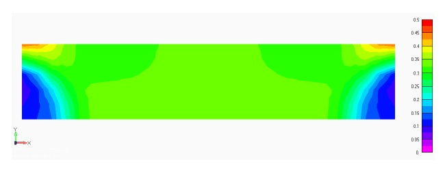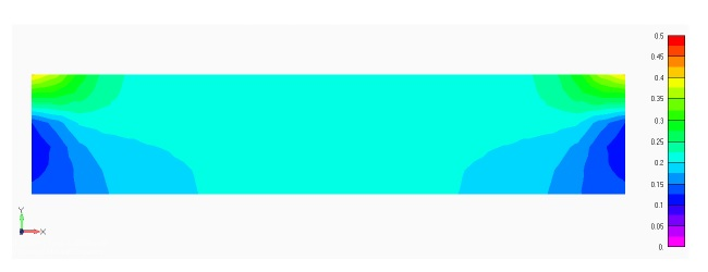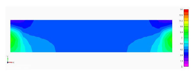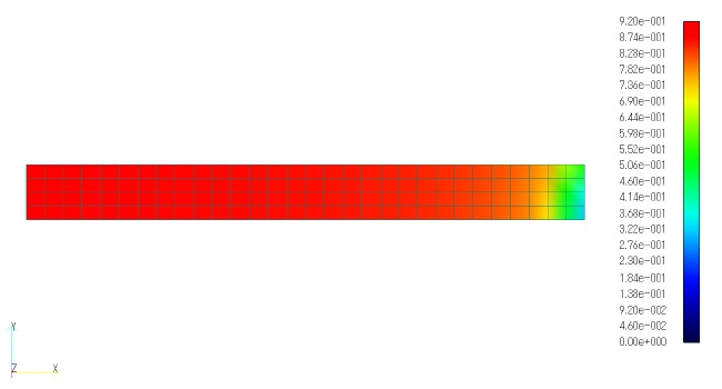 Next, a hysteresis analysis (restart calculation) at 20$^\circ C$ is performed using the results of the hysteresis analysis at 200°C. The "20C_demag" in Figure 3 is the result of the analysis, and "BH(20C_demag)" represents the demagnetization curve at 20$^\circ C$ that takes the demagnetization at 200C into account. As is generally known, when the temperature changes from 200$^\circ C$ to 20$^\circ C$, the magnet moves on the demagnetization curve at 20$^\circ C$ demagnetized by the amount of demagnetization at 200$^\circ C$. This phenomenon of demagnetization at high temperatures, where the demagnetized portion remains even when the temperature is returned to normal, is called thermal irreversible demagnetization. Figure 4 shows the demagnetization rate (in this case, the rate of decrease from the residual magnetic flux density at 20$^\circ C$) when the magnet is restored from 200$^\circ C$ to 20$^\circ C$. The magnet is demagnetized nearly 100% except at the edges of the magnet.