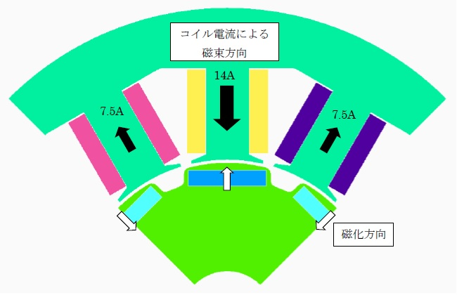 Generally, embedded permanent magnet type rotating machines (IPM motors) are operated with field weakening control by increasing the current advance angle in order to reduce the induced voltage due to the magnet flux at high speeds, taking advantage of their characteristics. At this time, if the magnetic flux generated by the armature winding is too large, the operating point of the permanent magnet may exceed the knee point, causing irreversible demagnetization. In addition, during overload operation (e.g., at startup), even for a short period of time, the temperature may become high, which may cause so-called thermal demagnetization. Rare-earth magnets with high energy density are more susceptible to thermal demagnetization than other magnets, and it is important to design motors that are resistant to demagnetization.