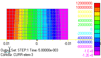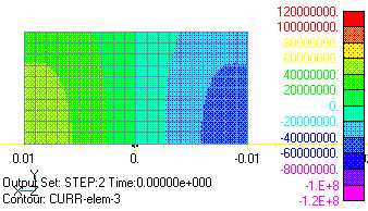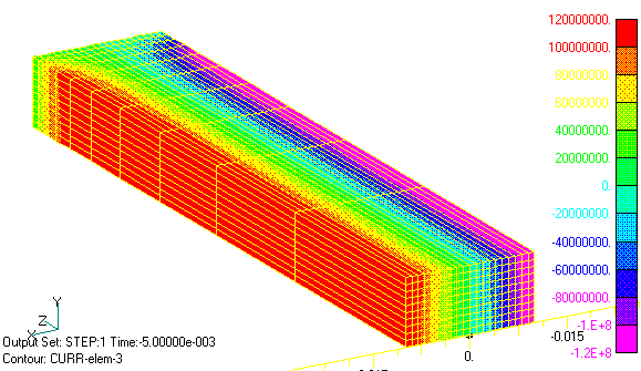 Fig.5 Two-dimensional analysis Current density distribution of eddy current in Z direction (phase 0 degrees), back side is in Z direction