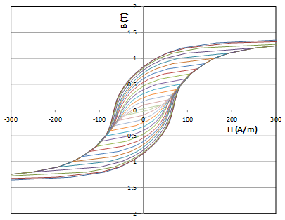 Fig. 3 shows the hysteresis curve of an electromagnetic steel sheet equivalent to 50A470, expressed using the Play model. Since the Play model is a mathematical model based on measured data, it requires measured data in a specified format. Since the accuracy of the measured data may affect the accuracy of the magnetic field analysis and the nonlinear convergence characteristics, it is necessary to devise ways to improve the accuracy of the data. Since the play model calculation is performed using the shape function derived from the measured data, the shape function has to be identified from the measured data prior to the magnetic field calculation. We will show how to do this in the next issue.