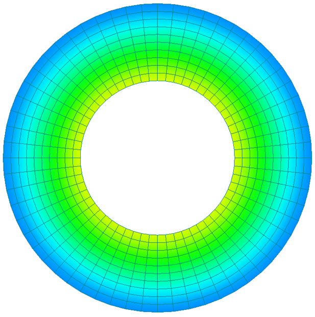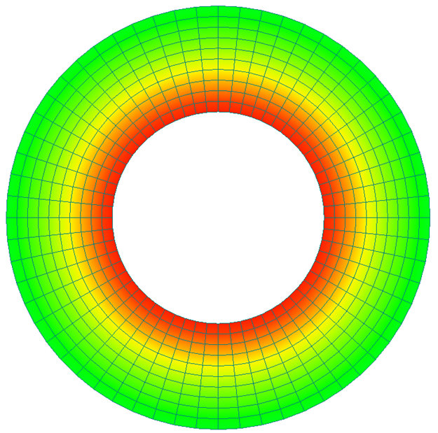 Similar to the “Iron Loss Calculation by Post-processing”, the hysteresis loss distribution of a hysteresis analysis using Play model can be output as post data. The hysteresis loss distribution for the ring sample model described above is shown in Fig. 7(a). The iron loss is evaluated not in the first period starting from the initial state of no-excitation, but in the period after the second period when a steady state is reached. Fig.7(b) shows the hysteresis loss distribution calculated in “Iron loss calculation by post-processing” (calculation method ②). Fig. 8 graphs the results of each calculation method as distribution values in the radial direction. In the post-processing iron loss calculation, the hysteresis loss changes in proportion to the square of the magnetic flux density, but in the Play model calculation, the loss is calculated according to the hysteresis characteristics actually measured. The hysteresis characteristics used in the Play model calculations are based on actual measurements, but the iron loss coefficients in the post-processing were obtained from the manufacturer’s catalogs.