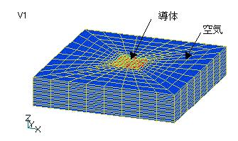 Gap elements can also be used when the conductor has an insulation gap: assume that there is a conductor of rectangular cross section in the z-direction and a voltage is applied, as shown in Fig. 1.