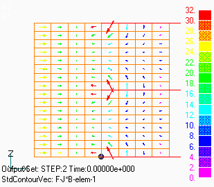 Fig. 3 shows the obtained current distribution. The current flows from bottom to top due to the applied voltage but is intercepted by the gap and bypasses the gap. Fig.4 shows the average heat generation distribution output to the heat file. The heat generation is concentrated at the gap tip. Fig.5 shows the electromagnetic force distribution obtained from the Lorentz force (force_J_B file). The force to open the gap works. To improve the accuracy, it is necessary to make the mesh at the gap tip finer.