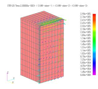 Fig.3 Eddy current density distribution (unit: [ $W/m^3$ ] )