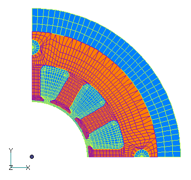 First, create a 2D mesh of the rotor and stator with triangles and squares as shown in Fig.1 and Fig.2. Here, the meshes are made in CRC/ATLAS, and the file names are rotor_mesh2D and pre_geom2D, respectively. If you made them in FEMAP, please put .neu extension. The outermost surface of the rotor and the innermost surface of the stator shall be on the same circle (on the sliding surface). Also, each must have at least one layer of air in contact with the sliding surface. The meshes in the direction of motion in contact with the sliding surface do not necessarily have to be equally spaced, and the meshes of the rotor and stator do not have to be the same, but as little difference as possible will make the calculation more stable. In the two-dimensional mesh, to define the sliding surface, a point on the sliding surface is added in the rotor mesh as a point element (Mass elements in the case of FEMAP).