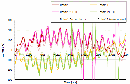 Although the multiphase AC simple EEC method may also applied to the rotor bars in stator coil voltage source analysis, since the stator coil current is corrected by the correction effect of the rotor bar, correcting only the rotor bar, which is dependent on the stator coil current, does not seem to be effective.