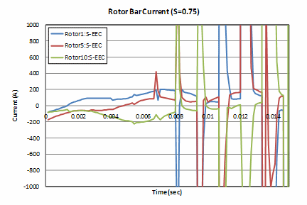 When we performed a restart calculation using the result of the fifth correction (at time 0.02sec) as the initial value (Fig. 10(b)), which is corrected accurately at 0.25 slip, a steady state was quickly achieved. When applying the multiphase AC simple EEC method to rotor bars in an induction machine analysis, we recommend that you use this method to accelerate convergence to steady state in the initial stage of the calculation.
