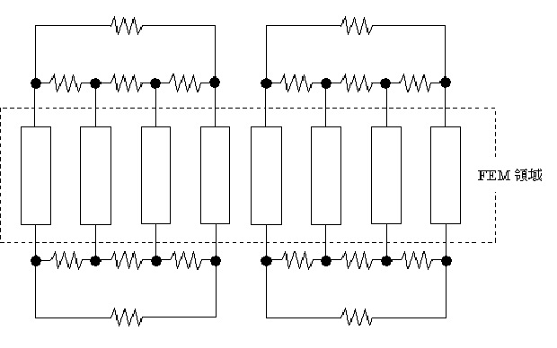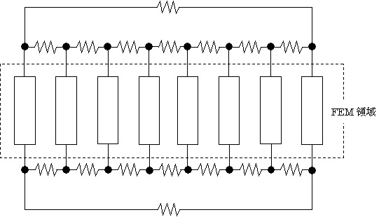 A more realistic approximation method for two-dimensional analysis is to simulate an end ring with a resistor and incorporate it into an electric circuit, coupling it with the finite element method. Fig. 2 shows the equivalent circuit. The rectangles in the finite element analysis area surrounded by dotted lines represents a rotor bar.