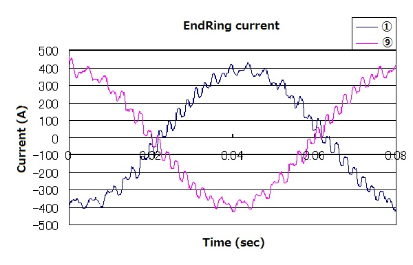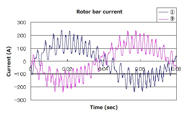 In this way, the currents flowing in each rotor bar and the current waveforms of the end rings can be seen even in the two-dimensional analysis.