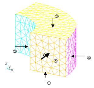 First, to set up the coil, SDEFCOIL defines four planes (1),(2),(3), and (4) surrounding the current path shown in Fig. 2 using surface elements. Each surface element has a different property number and is defined with the inside of the coil as the positive direction of the face, in the order of the right-hand thread direction relative to the current direction. On the other hand, PHICOIL defines the current inflow surface (5). The current outflow plane is assumed to be the opposite symmetry plane and does not need to be defined. When the coil is closed, as in the full circumference model, a gap element is used together.