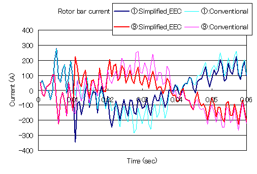 The SD-EEC method cannot analyze a generator or a large field-wound synchronous machine by defining the rotor bars of the cage (short-circuit ring) using SUFCUR, but the simple time-period method can, as shown in the example of the induction machine above.