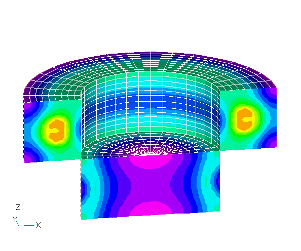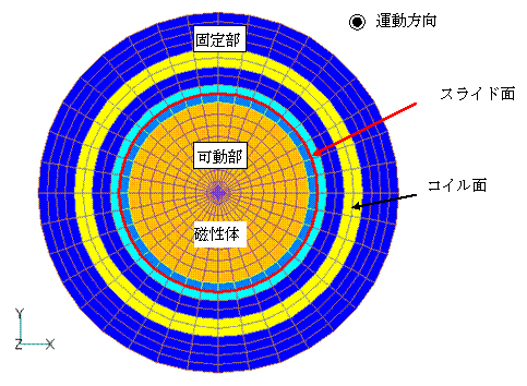 For example, consider the case where a movable part moves from the back to the front of the figure as shown in Fig. 1. In the 2D mesh that forms the base of the 3D model, the sliding surface is represented by a closed circumference. The input is the same as before. If the 2D mesh is extended in the z-direction using 2D_to_3D to create a 3D model, the sliding surface becomes cylindrical. In this case, the upper and lower surfaces of the model are set to anti-periodic symmetry. Since this model is axisymmetric and can be calculated with a two-dimensional model, there is no need to make this type of 360-degree model. However, we have made a 360-degree model in consideration of cases where there is no axisymmetry or periodic symmetry. Also, for circumferential sliding motion, it is now possible to define a sliding surface closed in the r-z plane, which was previously not possible.