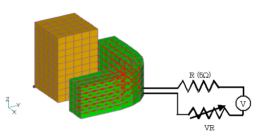 A time-dependent variable resistance element (VR) has been added to NETWORK. An example analysis is shown in Fig. 1 for the model described in "Improvement of Power Supply Input Method"( with the addition of the variable resistor element.