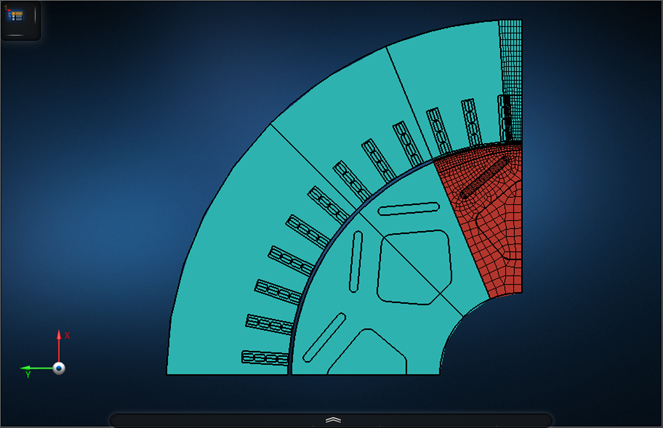 By creating meshing geometry data from the original CAD geometry, you can easily control the number of divisions by cutting out areas near conductor surfaces and motor gaps.