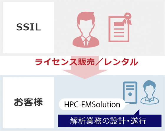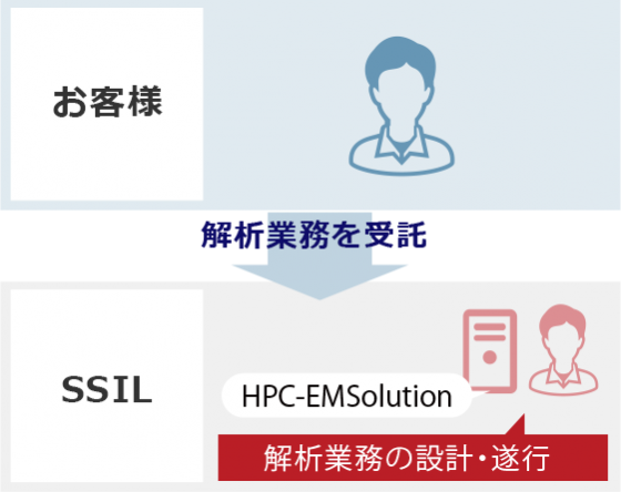 大規模メッシュの作成も含め御社が解析を請け負います。最初の解析のみSSILが実施し、それ以降は御社が解析することもできますので、HPC-EMSolutionのエントリーとしてもご活用ください。