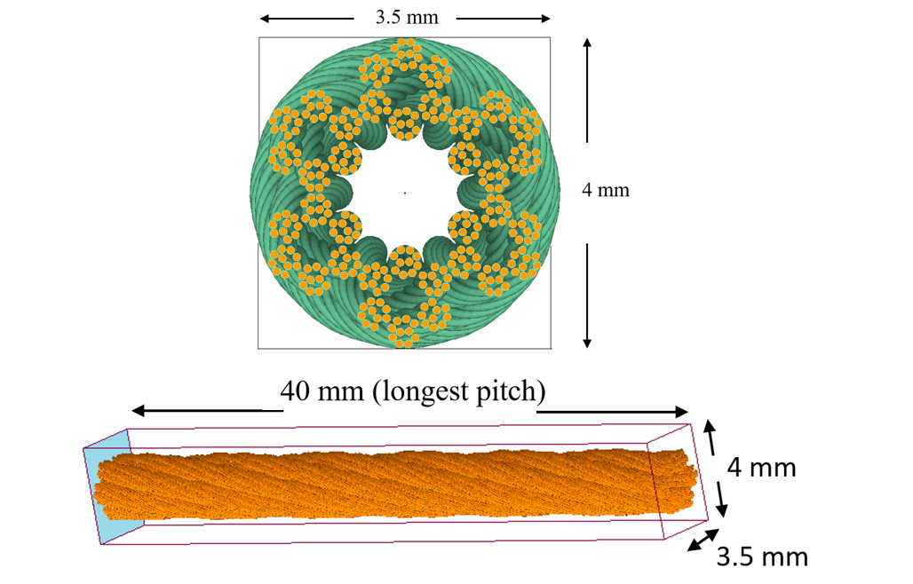 ユニットセル解析では、リッツ線の1本分をモデル化し、周期性等を考慮し、その等価複素透磁率を求めます。ビオサバールCLN法では空気領域のメッシュが不要のため、複雑なリッツ線のメッシュ作成も専用のメッシュ作成ツールを用いて簡単に行えます。