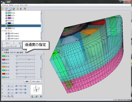 透過度は、プロパティ毎に指定することができ、入れ子構造のモデルも適切に表示することができます。
