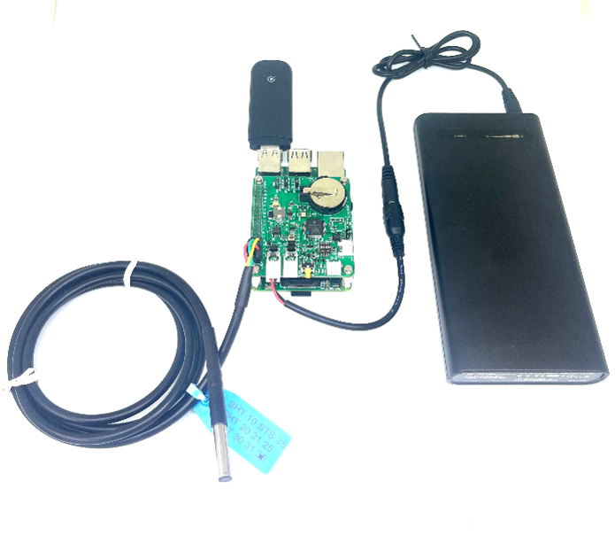 市販のモバイルバッテリーやシングルボードコンピュータ、IoT用SIMを活用することで低価格化を実現